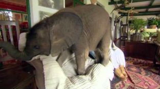 Baby elefant forårsaker kaos hjemme