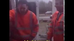 I Russland, en ung rev som stakk hodet inn i en glassbeholder ber om hjelp fra to menn som var forbi området.