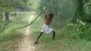 En fortvilet far tok hevn på en giftig kobra og drept den ved slamming den på bakken etter å oppdage slange hadde bitt sønnen til døden.