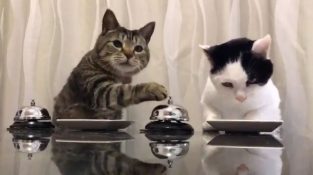 I Japan, to katter krever tørrfor trykke en bjelle.