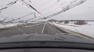 Skjedde den 20. mars, 2017 / Buffalo, New York, USA «Jeg kjørte ned I-90 rundt Batavia, NY på vei hjem til Buffalo, NY when ice flew off the top of a tractor trailer [...]