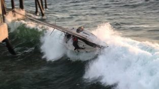 I Los Angeles, California, en liten seilbåt spille i vill farvann på grunn av sterk vind, mens du prøver å snu kysten rammet av en sterk bølge og veltet. Heldigvis, Alle fire beboerne [...]
