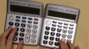 En ung mann fra Japan spiller musikken til sangen 'Despacito' ved hjelp av to musikalske tonekalkulatorer.