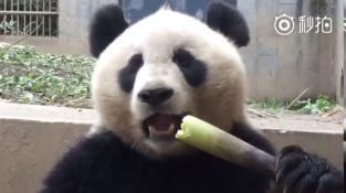 Alltid nyte fersk bambus skyter på kabinettet, Zoologisk Park i Kina.