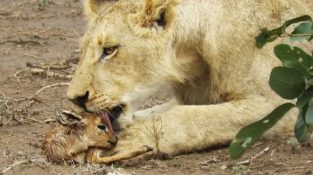 En utsultet ung løve klarte absolutt å få klørne sine i en velsmakende liten matbit. Denne intense videoen holder deg på kanten av setet mens du venter på å se hvordan det blir....