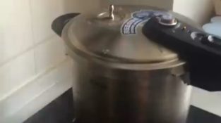 Noen koke et egg med en trykkoker, å plassere på dampstrålen som kommer ut av ventilen.