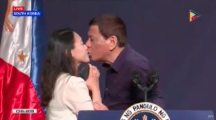 Filippinsk president Rodrigo Duterte kysser en fremmed på leppene