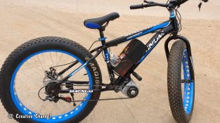 En tekniker installerer alle nødvendige komponenter på en terrengsykkel, og med noen modifikasjoner omdanner den til elektrisitet.