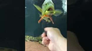 En fisk riste på hodet veldig raskt, etter et objekt som roterer foran akvariet.