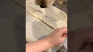 En kvinne åpner frem til nye og dyre Louis Vuitton bag, dokumentere erfaring på video. Men den lille hunden hennes vil ødelegge presentasjonen...