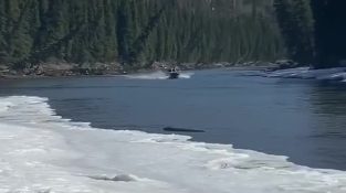 I Karelen-regionen i Russland, et vannrør gjøres om til en ismaskin.