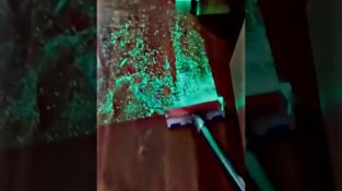 Dyson V15 Detect-støvsugeren sender ut en laserstråle som avslører støv på gulvet.