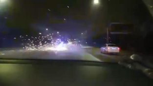I byen Voronezh i Russland blir en bil jaget av politiet, mens fyrverkeri-raketter skytes opp fra den forfulgte bilen mot patruljebilene.