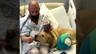 Etter å ha blitt innlagt på sykehuset, en mann fikk besøk av Magnus hunden hans, som aldri slapp ham ut av syne.