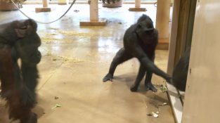 I Higashiyama Zoo i Nagoya, Japan, Annie, en ung gorilla, hun spiller en spøk med foreldrene sine. Mens de forbereder seg på å forlate innhegningen, klyper Ais mors rumpa og [...]