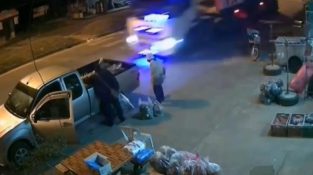 En bergingsbil treffer og drar en semibil som er stoppet i veikanten, og nesten traff to menn som i det øyeblikket lastet noen ting inn i pickupen.
