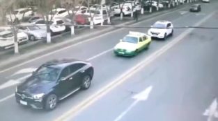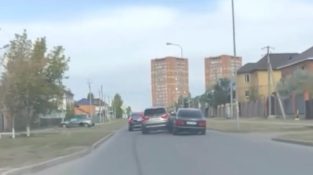 Skudd som ligner på det berømte videospillet Grand Theft Auto, finne sted på en gate i Russland. To sjåfører irriterte seg på hverandre, de duellerer ved å bruke bilene sine som våpen.