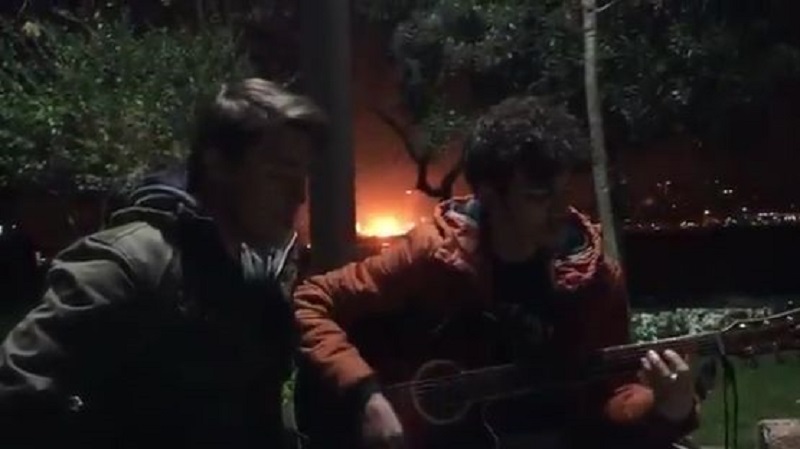 Wieczór sobota, 10 grudnia 2016 w Stambule, Grupa młodzieży, śpiewa i gra na gitarze w parku, Gdy jedna z bomb Dwuosobowy bombowego wybucha za nimi, po drugiej stronie Bosfor.