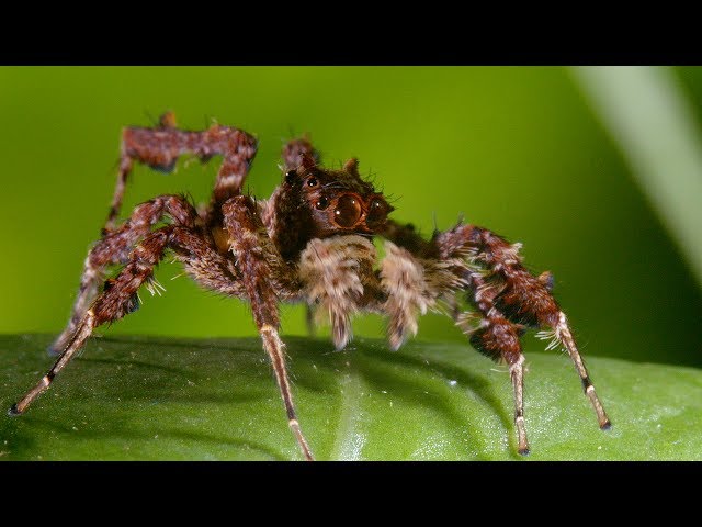 Są one znane jeść inne pająki, Portia jest rodzajem Pająka może skoczyć do 50-krotnej długości ciała. W niektórych bardzo imponujących zbliżeń, widzimy, jak ten niesamowity spider wykorzystuje swoje supermoce złapać zdobycz, która jest trzy razy większa niż w tym samym.