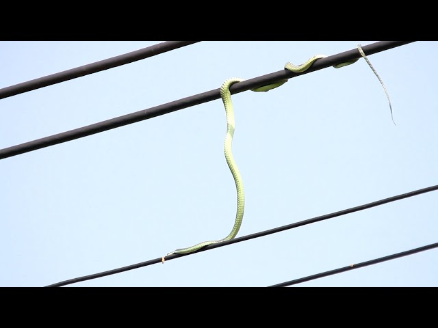 W mieście Kota Kinabalu w Malezji, wąż porusza się wzdłuż kabla elektrycznego próbuje złapać ptaki.