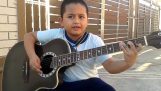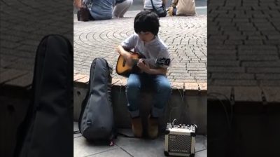 11-letnia Feng E z Tajwanu, niesamowicie wykonuje na ukulele „Classical Gas” Masona Williamsa, na placu w Taipei.