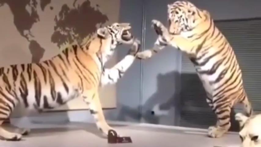 W muzeum historii naturalnej w Szanghaju w Chinach, Jest wykazują wypchane dzikich zwierząt. Ale jeden z lwów, Nie wydaje się więc dziki.