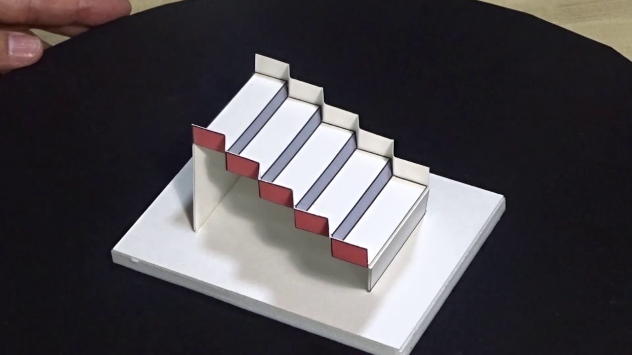 Wizualna iluzja z drabiną 3D Schroeder autorstwa Japończyka Kokichi Sugihary. Schody Schroedera to wizualne złudzenie klatki schodowej w dwuwymiarowej konstrukcji, który pozostaje taki sam, nawet jeśli projekt jest odwrócony do góry nogami.