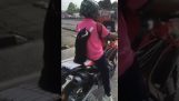 Rybak wbija ośmiornicę na plecy swojego kolegi.