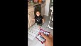 Aby zmniejszyć rozmiar kocyków, aby schować do szafy, kobieta robi sprytny trik z odkurzaczem. Umieszcza koce w dużej torbie, a odkurzaczem zasysa powietrze przez worek. Tak kompresuje się koce, i nie potrzebujesz już dużej przestrzeni do przechowywania.