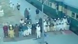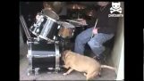 Duncan Phillips, perkusista australijskiego zespołu Newsboys, gra na perkusji na platformie, która przechyla się o 90 stopni i obraca.