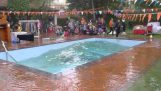 W pełni zautomatyzowany hotelu Flyzoo Hotel w mieście Hangzhou w Chinach, barmanem - Robot przygotowuje koktajl.