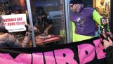 Muzyk Cyran poszedł do działu z zabawkami w sklepie Walmart i wprawił klientów w nastrój. Grał znane utwory taneczne na dziecięcych pianinkach, takie jak „Blue” zespołu Eiffel 65.