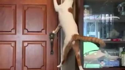 Inteligentny kot otwiera drzwi