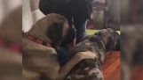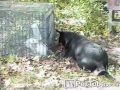 W Rosji, misia imituje kobietę kopania w ogrodzie do ziemniaków roślinnych.
