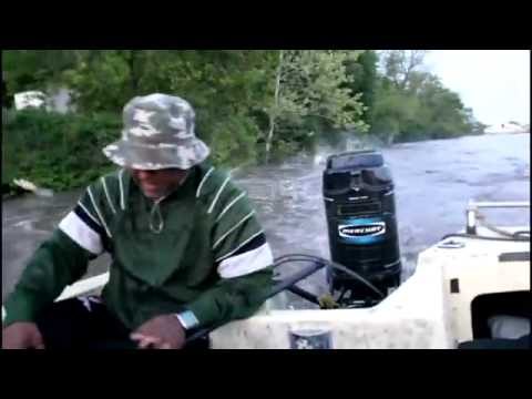W łodzi rybackich, Ta grupa wędkarzy uderzanie żyła złota, jak stado karp zaczyna panikuje i skacze we wszystkich kierunkach i wreszcie w ich łodzi. Na stronie jest rzeką Illinois, w USA.