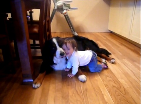 A Berner pies rasy i dziecko 9 miesięcy grających znajomych