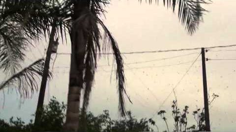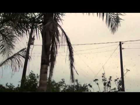 Tysiące pająków wiszące z Polaków energii elektrycznej w miejscowości Santo Antonio de Plantina z Brazylii. Mieszkańcy regionu znaleźć to zdjęcie, pochodzących z ich domu, czwartek rano (02/07/2013) i nikt nie wie, dlaczego pająki mają takie dziwne zachowanie.