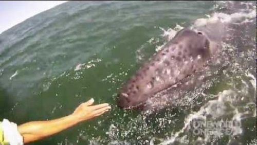 Pływacz szary w laguny San Ignacio, stawia mały ją z powrotem pomocy lepiej turystów. A to jest nielegalne statki zbliża się wielorybów, To matka i jej dziecko zdaje się rozkoszować uwagi i chcesz zbliżyć się do ludzi.
