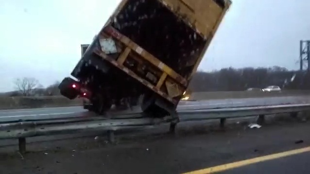 Jak ruch został zatrzymany z powodu zderzenia dwóch ciężarówek na autostradzie, New Jersey, mężczyzna wyciąga swój telefon do ściągania filmów, kiedy nagle słyszy hałas z tyłu... Ciężarówka wymykająca się spod kontroli na oblodzonej drodze, pochodzi z wielką prędkością Kiedy na. Na szczęście, Spędziłem kilka centymetrów od następnego.