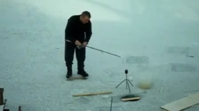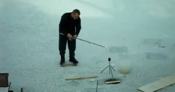 Ten rybak udało się złapać ryby przez otwór w zamarzniętym jeziorze. Po trudno wyciągnąć haczyk, przyniesie to narzędzie, ale ryba nie powiedziała jeszcze ostatniego słowa...