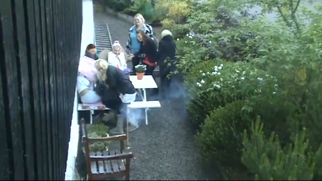 Grupa kobiet cicho siedzieć przy stole i słuchać muzyki, Kiedy jeden z nich postanawia światło fajerwerków. Ale rakieta uderza w okap domu i wraca...