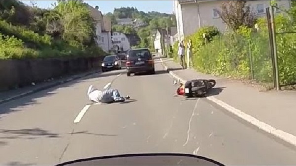 W mieście Nadrenia Północna-Westfalia, Niemcy, motocyklista jest postrzegane przed wypadku jak prowadzi. Kierowca wyprzedza i uderza jeździec na skuter, a drugi traci kontrolę i spada na bruk. Kilka pieszych i motocykl synepibatis pomóc nieszczęśliwy człowiek, ale kierowca opuszcza scenę wypadku. Następnie motocyklista decyduje się łodygi. Ostatecznie, i po rozmowie, który możemy zobaczyć w teledysku, motocyklista o nazwie policji, który natychmiast wycofała pozwolenie kierowca. Kierowca skutera doznał tylko niewielkich obrażeń.
