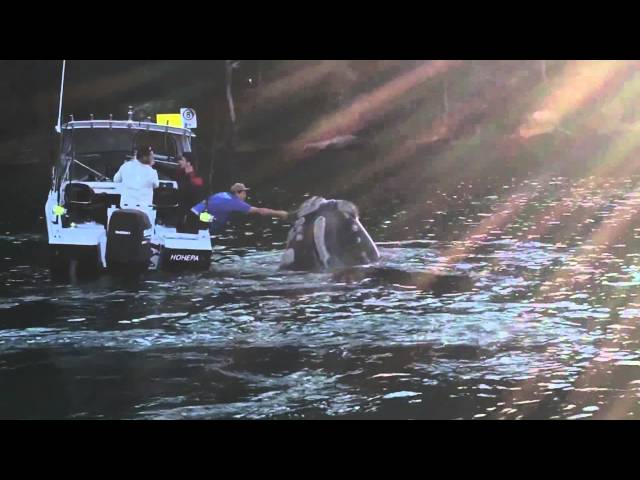 Wieloryb zaskoczył grupę rybaków z North Sydney, Wydaje się, jak prosisz o pomoc podczas pływania w pobliżu ich łódź. Jeden z mężczyzn zobaczył, że wieloryb przykleił netto i plastikowej torbie na prawej stronie jej usta. Kiedy wyciągnąwszy rękę do jej pomóc, wieloryb współpracuje przechylanie jej ciała ku niemu.