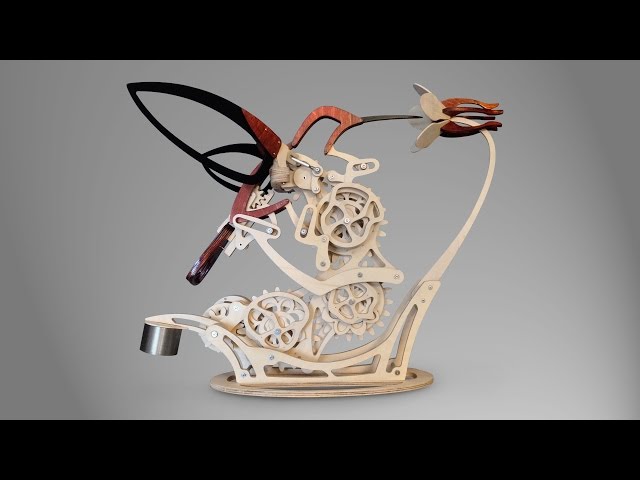 Hugger Derek specjalizuje się w produkcji mechanicznej rzeźby jako jeden z jego ulubionych hobby. W tym filmie widzimy ostatnie budowa drewna, który reprezentuje ruch skrzydła kolibra.