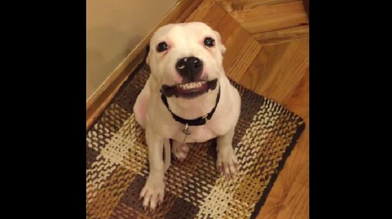W domu w Chicago, Stany Zjednoczone, Herbert, młody pitbulli pięć miesięcy, może i uśmiechu słuchając mandat od swojego szefa. Aby to zrobić, tak długo jak usłyszy „Powiedz ser”, i następnie pokazuje zęby.