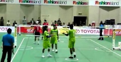 Footvolley takraw plażowy lub zwany jako, To jest bardzo popularnym sportem w Tajlandii. Tutaj widzimy imponujące cytat z meczu Pucharu w mieście Bangkok.