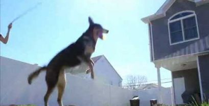 Holenderski Shepherd, który niewątpliwie dowiedział się dwukrotnie liny