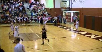 Edebal Anna Olson stawia koszyka niesamowity wyścig w szkole żeńskiej koszykówki (Lewis Palmer high school w Colorado, Stany Zjednoczone Ameryki).
