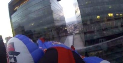 Sportowców Ludovic Woerth i Jokke Sommer wykonać wspaniałe lot w wingsuits, upadki w centrum Rio de Janeiro.