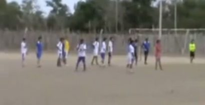 Kiedy bramkarz w amatorskiego wyścigu w Brazylii jest na drugim końcu boiska, rejestruje znajomego z motocykla, że szybko zamienia się w zakończeniu.